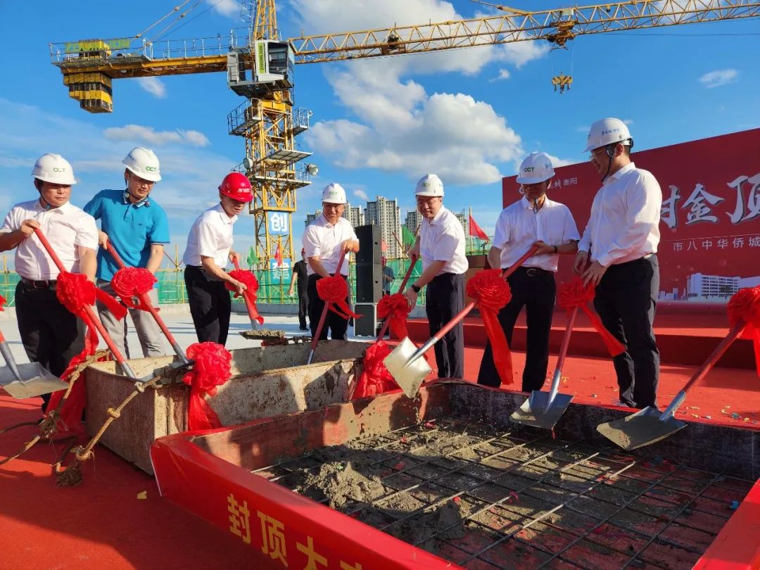 7月31日,隨著(zhù)最后一方混凝土的澆筑完成,由湖南省衡洲建設有限公司承建的衡陽(yáng)市松梅湖片區改善人居環(huán)境建設(松梅湖學(xué)校A校區)工程總承包項目(下稱(chēng)“松梅湖學(xué)校A校區項目”)主體結構順利封頂。衡陽(yáng)市委市政府、石鼓區委區政府、衡陽(yáng)市教育局、石鼓區教育局、湖南華僑城、衡陽(yáng)市八中相關(guān)領(lǐng)導以及湖南省衡洲建設有限公司董事長(cháng)唐仕亮出