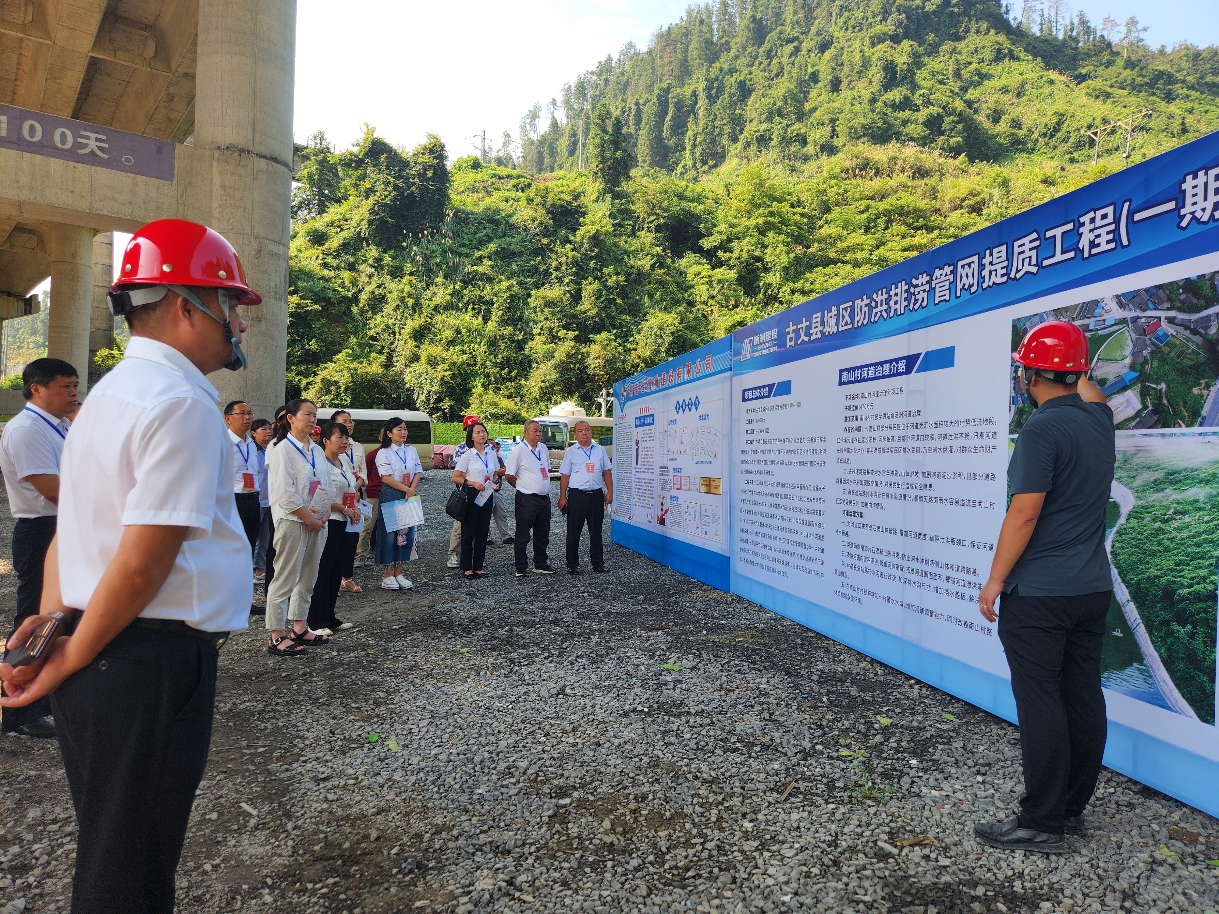 7月28日上午,全國、省、州、縣四級人大代表聯(lián)合調研組在古丈縣委副書(shū)記麻學(xué)清、縣人大常委會(huì )主任鄭良武帶領(lǐng)下,蒞臨湖南省衡洲建設有限公司(下簡(jiǎn)稱(chēng):“衡洲建設”)承建的古丈縣城區防洪排澇管網(wǎng)提質(zhì)工程(一期)視察指導。衡洲建設工程副總經(jīng)理唐雪平全程陪同。