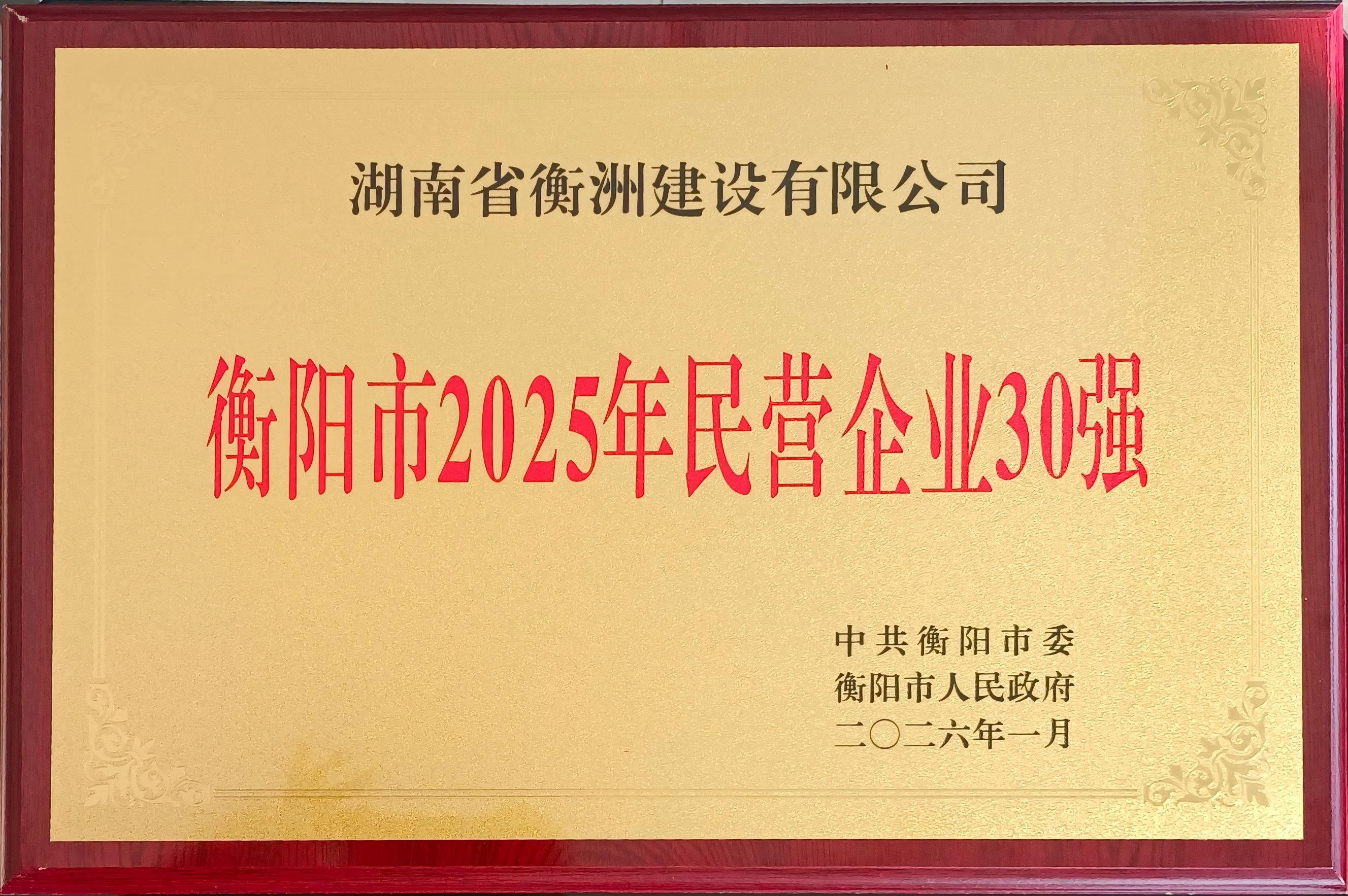 大會(huì)現(xiàn)場發(fā)布了“2025年度衡陽市民營企業(yè)30強(qiáng)”等權(quán)威榜單。衡洲建設(shè)憑借持續(xù)穩(wěn)健的經(jīng)營表現(xiàn)、扎實(shí)的技術(shù)創(chuàng)新能力
