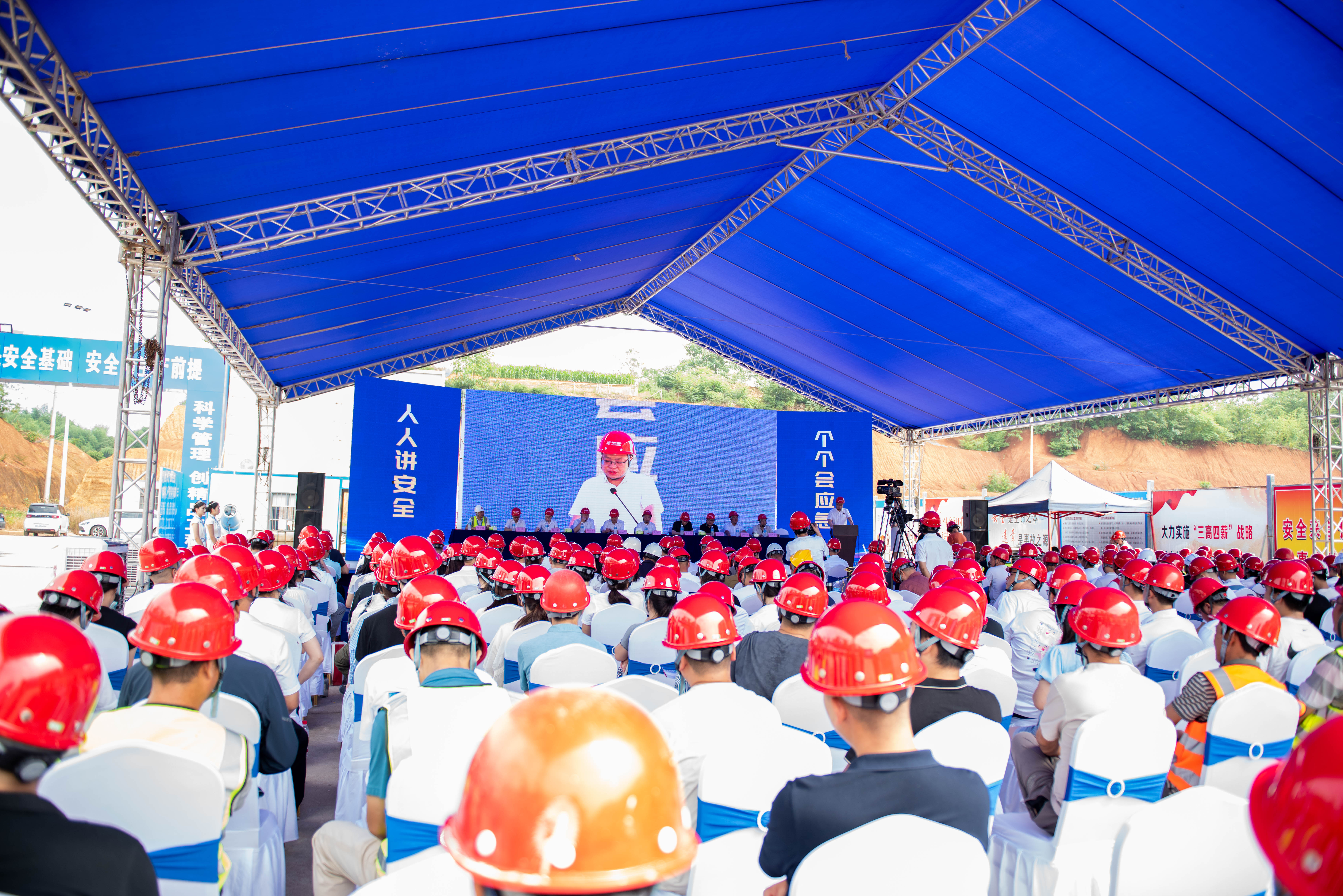 6 月 13 日上午,2025 年衡陽(yáng)市建筑施工“安全生產(chǎn)月”安全質(zhì)量標準化現場(chǎng)觀(guān)摩活動(dòng),在衡洲建設承建的衡南縣鄉村振興產(chǎn)業(yè)融合示范區項目(冷鏈項目)工程總承包(EPC)項目現場(chǎng)成功舉辦。本次觀(guān)摩會(huì )緊扣 “人人講安全,個(gè)個(gè)會(huì )應急 —— 查找身邊安全隱患” 主題,創(chuàng )新采用 “主會(huì )場(chǎng) + 分會(huì )場(chǎng)” 實(shí)時(shí)聯(lián)動(dòng)、“線(xiàn)上+線(xiàn)下” 同步推進(jìn)的形式,全方位呈現了項目在安全生產(chǎn)標準化、綠色建造、建筑工業(yè)化方面的前沿理念,以及智慧化、質(zhì)量標準化、精細化管理的諸多亮點(diǎn)。衡南縣人民政府副縣長(cháng)周小云、衡南縣住房和城鄉建設局黨組書(shū)記、局長(cháng)全云生等領(lǐng)導及縣內各建設項目的建設單位項目負責人、監理單位、施工企業(yè)負責人等共 300 余人出席活動(dòng)。衡洲建設董事長(cháng)唐仕亮、總經(jīng)理唐崇宇參加啟動(dòng)儀式。唐崇宇總經(jīng)理在啟動(dòng)儀式上分享了項目創(chuàng )建安全生產(chǎn)標準化工地的做法與經(jīng)驗。