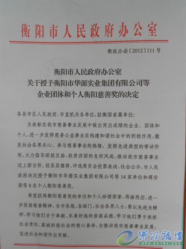 我司榮獲首屆衡陽(yáng)慈善獎(jiǎng)