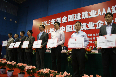 10月22日,中國建筑業(yè)協(xié)會聯(lián)合河南省建筑業(yè)協(xié)會在豫舉辦了2011年度雙百強頒獎大會,我司再次榮登最具成長性百強企業(yè)榮譽榜單,此次湖南省共有三家單位參與最具成長性百強的評選,我司以湖南省第一的好成績位列榜單的第80位,也是衡陽市唯一一家獲獎單位。